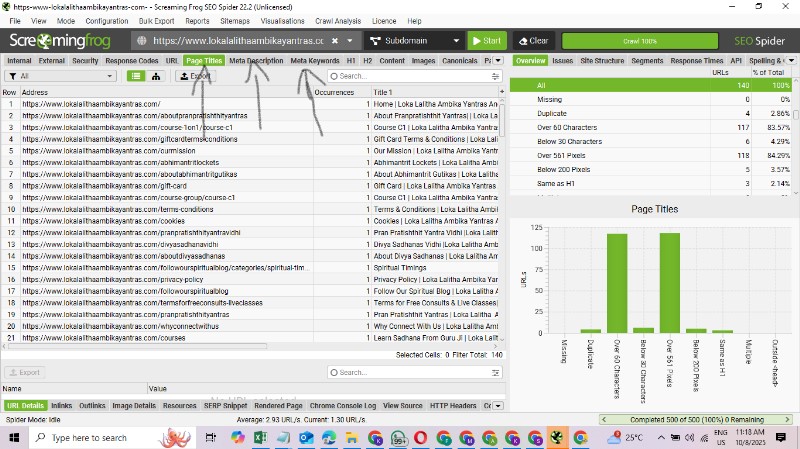 - On-page SEO (title tags, meta descriptions, headings, keyword usage)